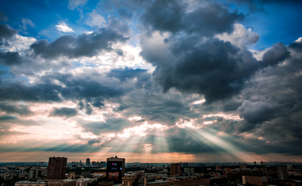 とにかくモスクワの空は広い!日本にいると感じないですが、空って本当は広いんだなといつも感じます。突き抜けるような青空。荒れ狂う雷雨。届けられる空雪。力あふれる光芒。私はいつも違う表情を見せる空が好きです。
